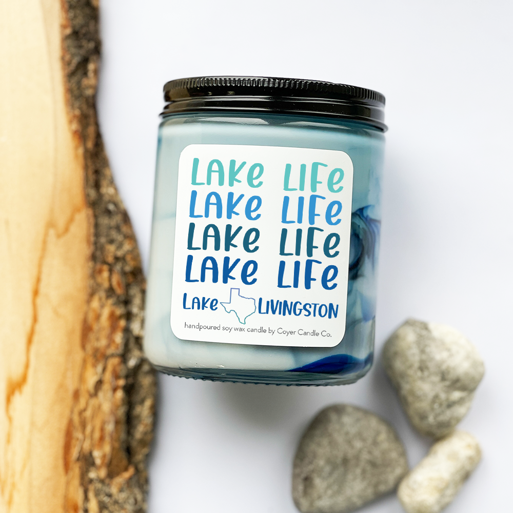 These are 9 oz. size hand-poured, 100% soy wax candles with 100% cotton wicks and a burn time of approximately 50 hours. Clear jar will come swirled while the others are dye-free.