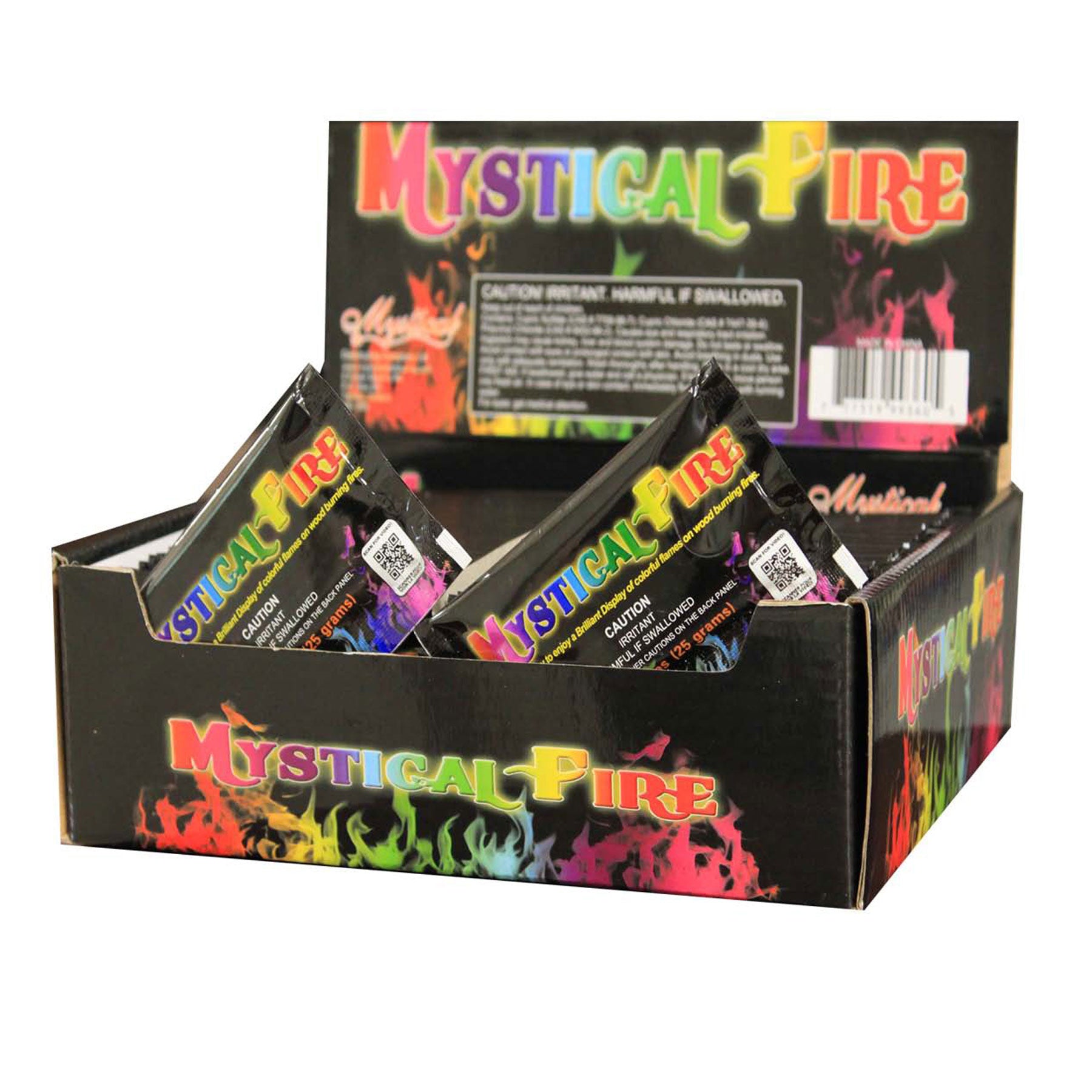 With Mystery Fire flame colorant salt packets, you can transform any wood-burning fire indoors or outdoors into rainbow-colored flames. Simply toss 3 to 5 unopened packages in, then watch as flames turn blue, green, red, purple, orange, and yellow. Mystery Fire color fire packets are only appropriate for wood-burning logs. Do not open the packet before throwing it into the fire. Contains chemicals that may be harmful if misused. Not for use by children except under adult supervision.